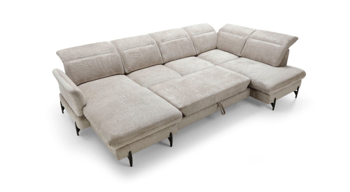 Posteljna funkcija: Sedežna garnitura vključuje funkcijo za hitro in enostavno preoblikovanje v udobno ležišče velikosti 125 x 270 cm, idealno za goste ali vsakodnevno spanje.