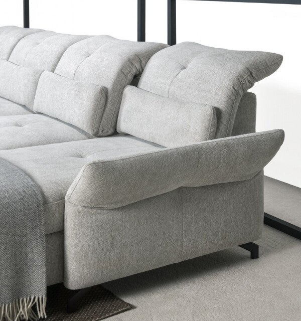 Oblazinjenje iz hidrofobne tkanine preprečuje vpijanje razlitih tekočin, kar omogoča enostavno vzdrževanje in brezskrbno uporabo. Garnituro dopolnjujejo kovinske noge v črnem polmat zaključku, ki poudarijo sodoben, arhitekturni značaj celote.